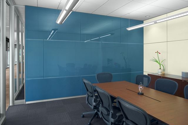 Baksida målad glasvägg i kontor
